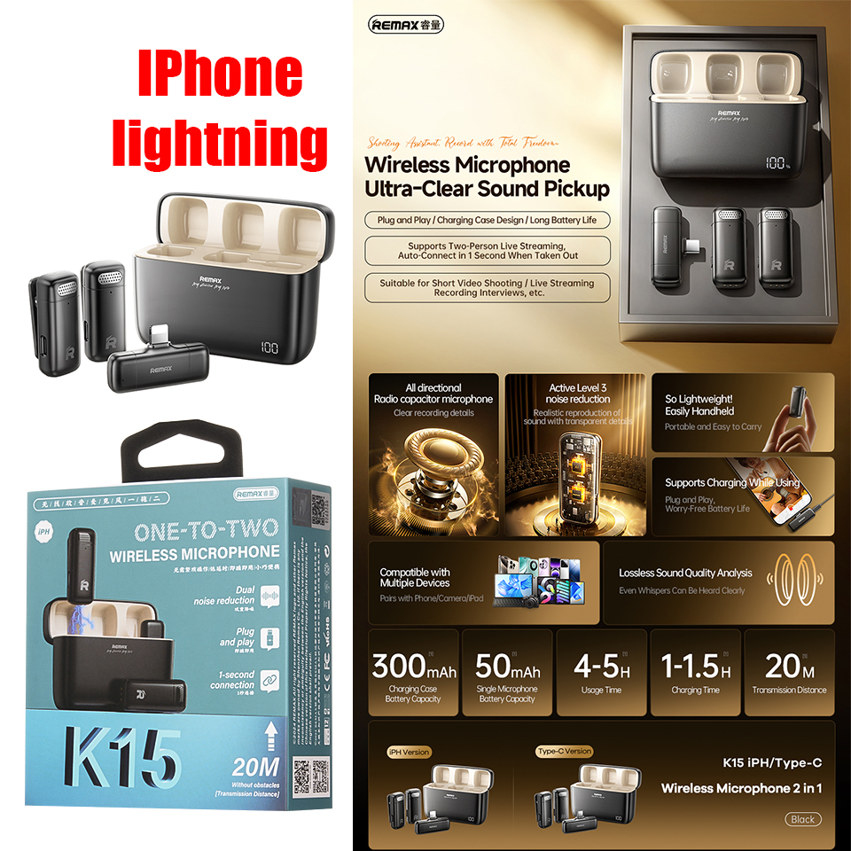 | Microphone LIVE Wireless Remax K15 lightning 2in1 |