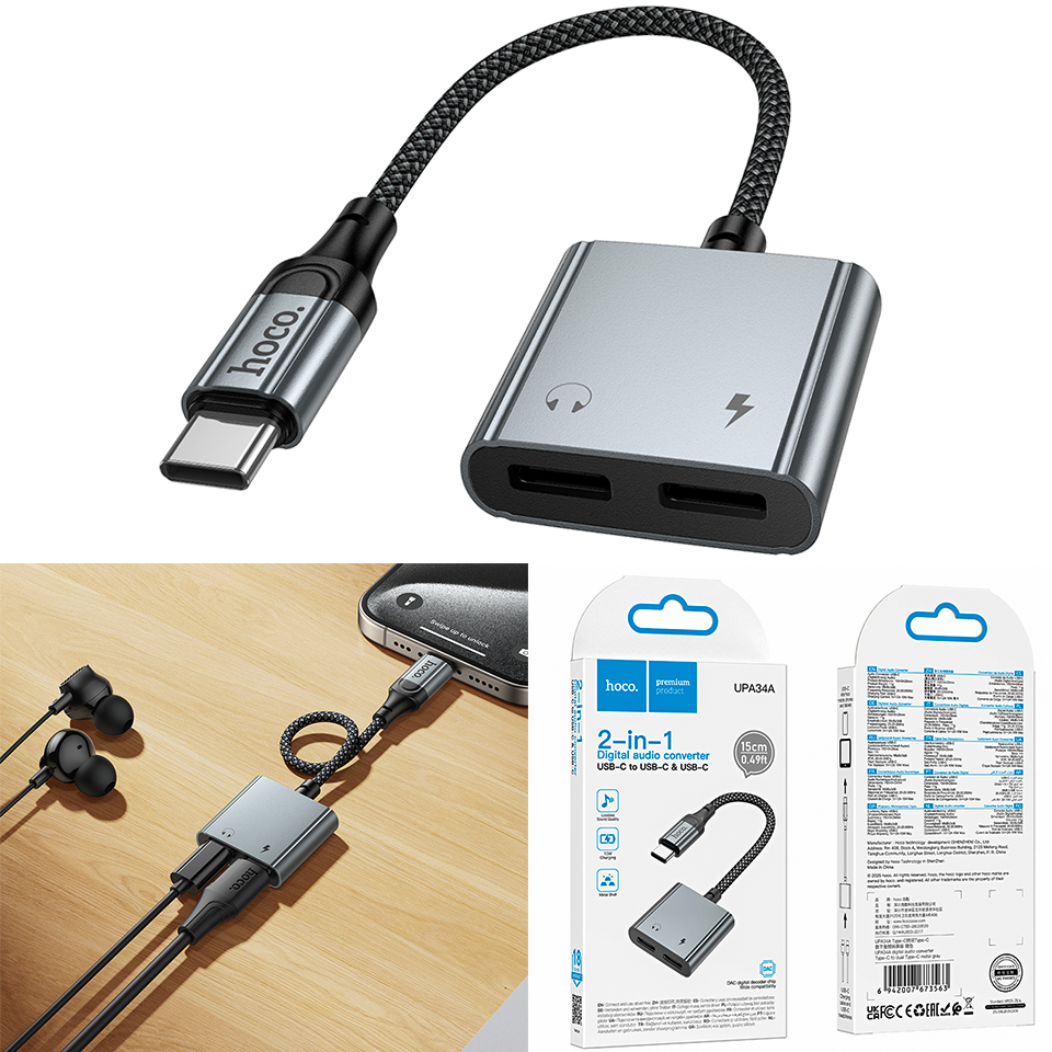 Product code:11348 (2Hits) Converter Type-C to (Type-C+3.5) hoco UPA34