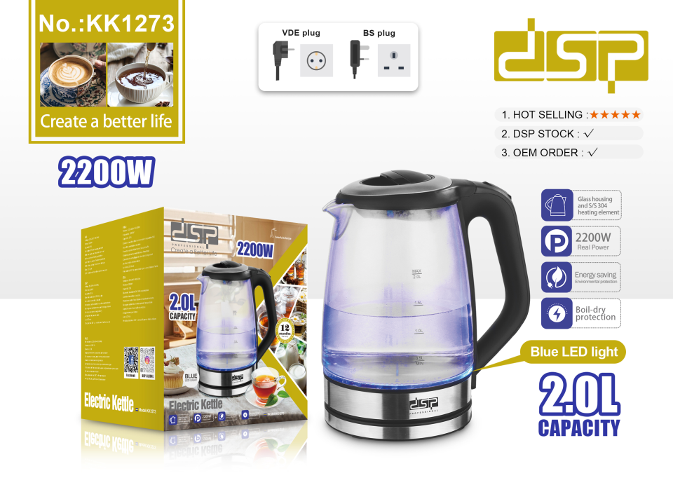 Product code:7779 (1652Hits) Electric Kettle 2.0L KM-2020