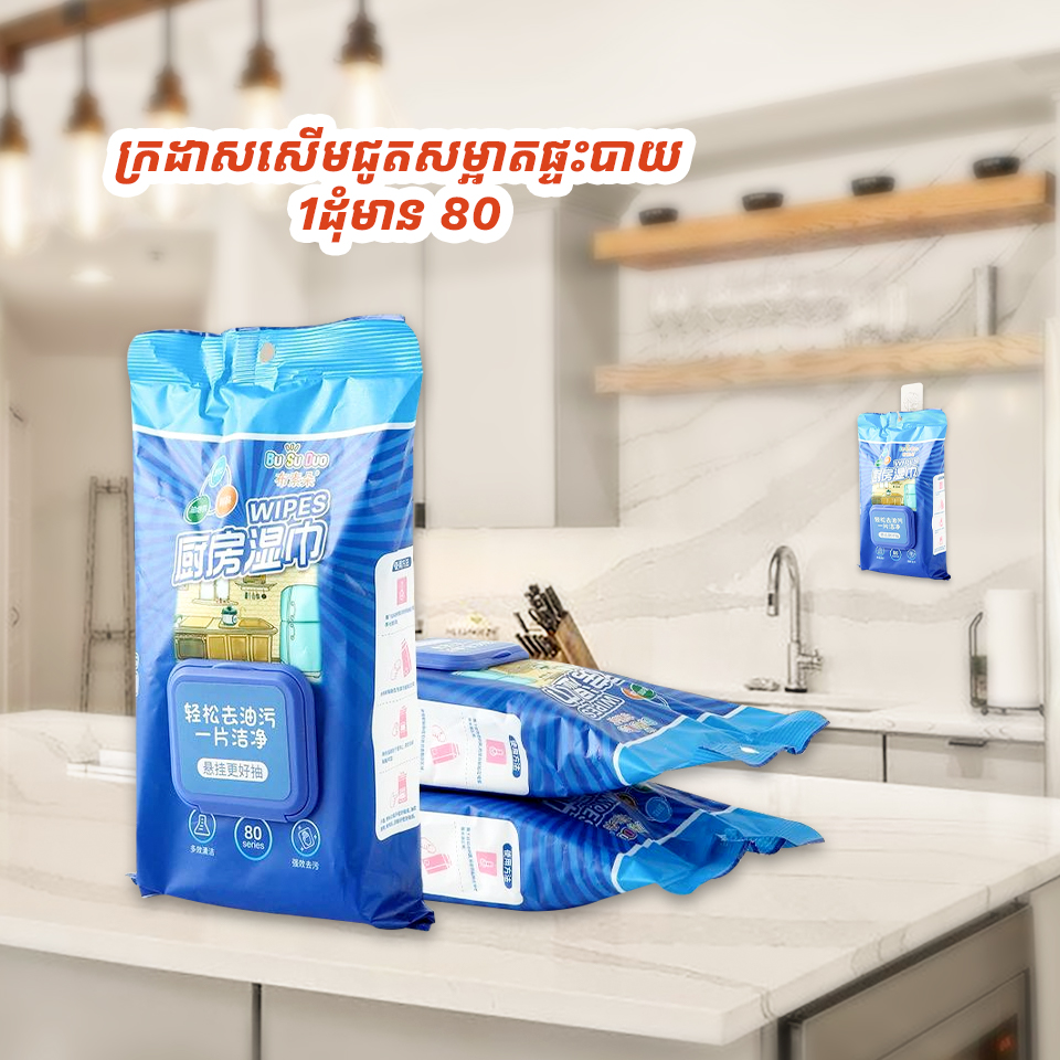 | ក្រដាសសើមជូតសម្អាតផ្ទះបាយ1ដុំមាន 80 |