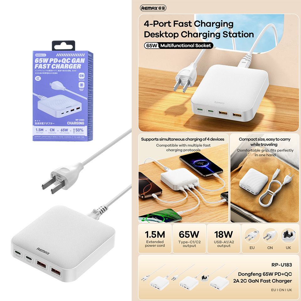 | ឆ្នាំងសាក ខ្វីកឆាច Remax RP-U183 PD/QC 65W |